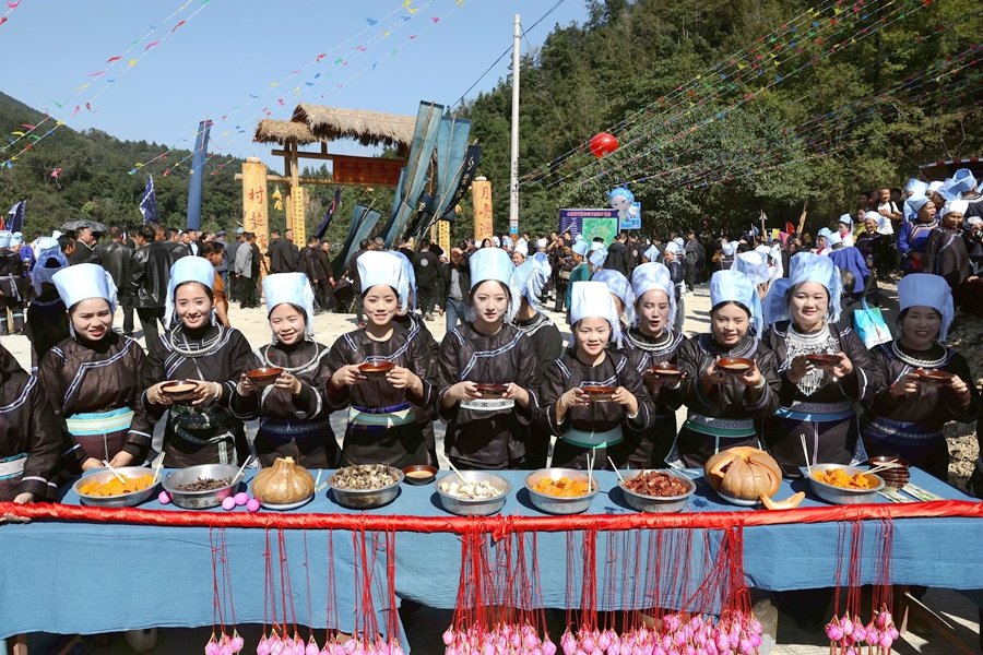 10月18日,具有800余年歷史傳統的黎平縣黃崗侗寨鼓笙齊鳴,迎來一年一度的“香禾糯節”,同時還舉行慶祝黃崗村榮獲聯合國旅游組織2025“最佳旅游鄉村”稱號揭牌儀式等活動,吸引著八方游客歡聚侗寨,與當地侗家人共慶豐收,共享喜悅。